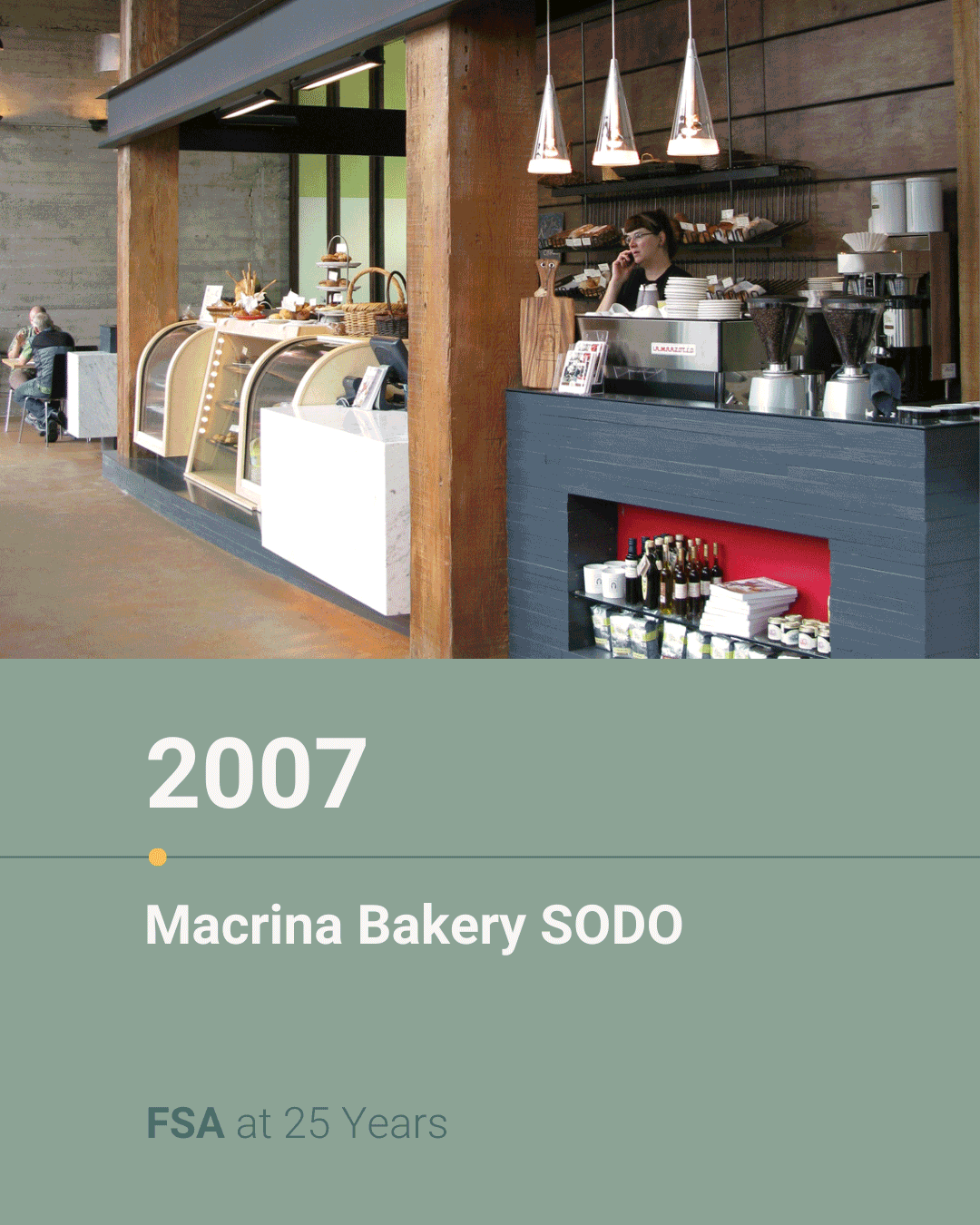 Rewinding to year 13 of 25: 2011. The year we expanded our partnership with Seattle’s beloved @macrinabakery to update two of their cafés located in the Belltown and Queen Anne neighborhoods.