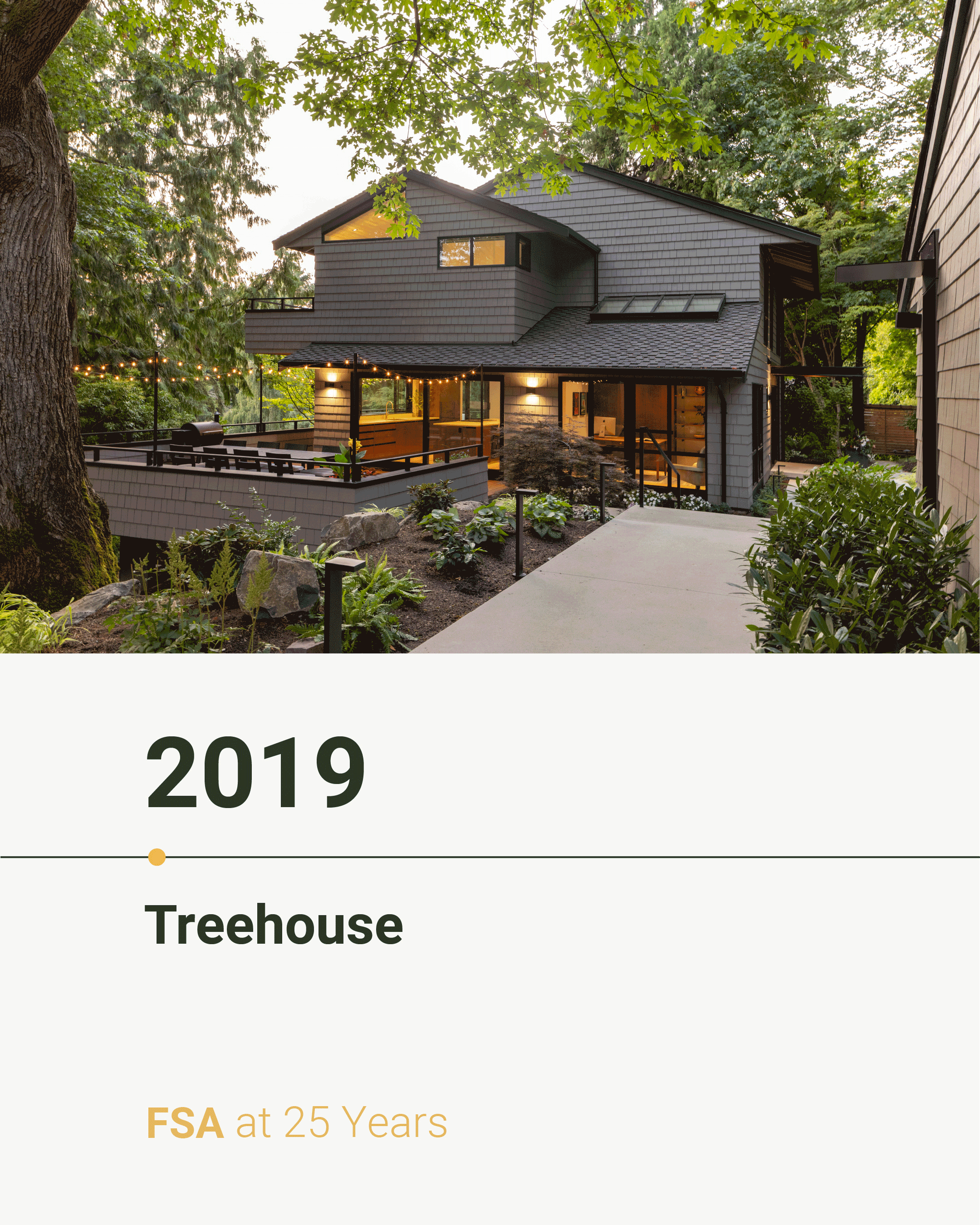 Rewinding to year 21 of 25: 2019. The year we renovated our Treehouse project, nestled among the Mercer Island trees.