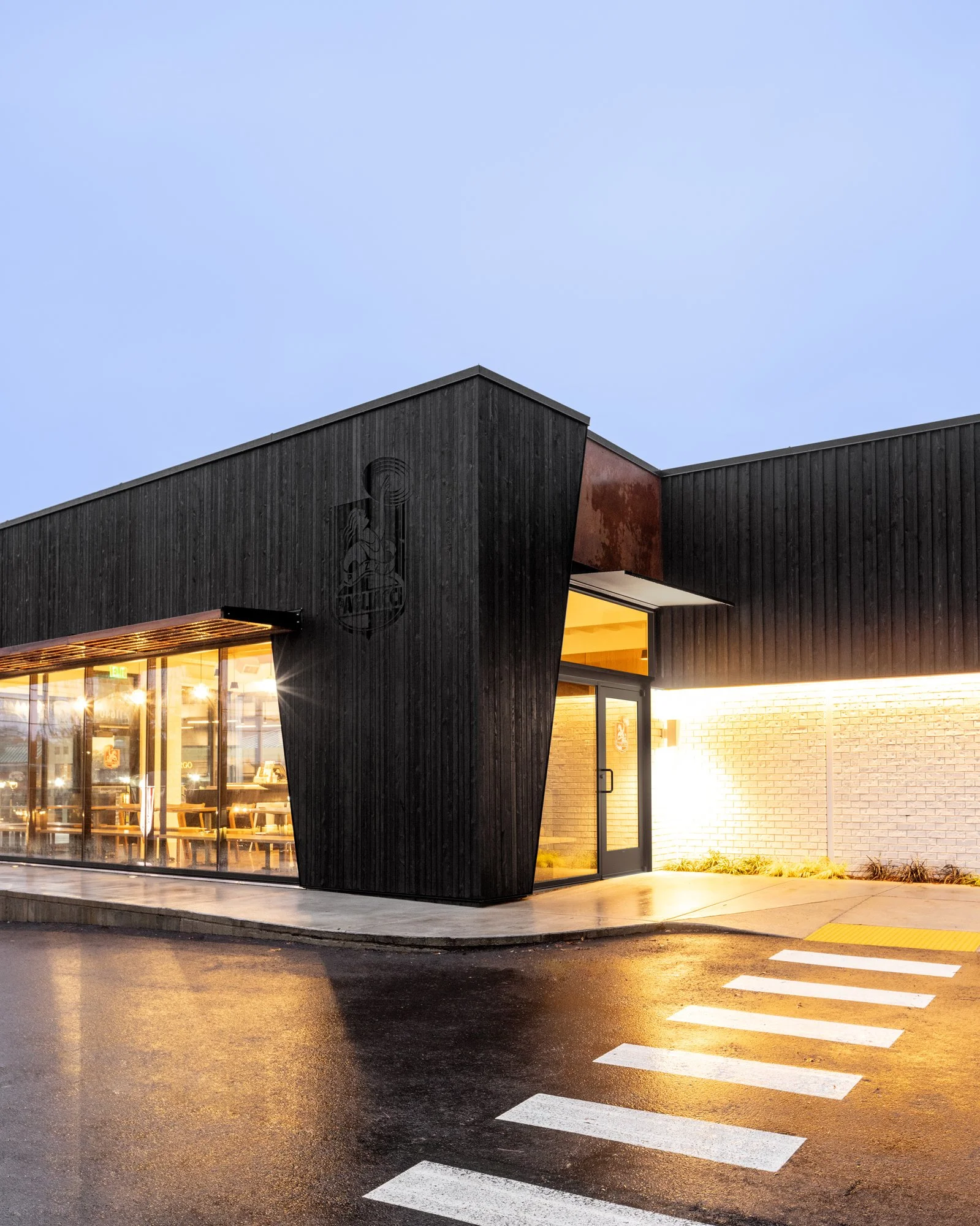 Pagliacci Pizza’s Juanita location got an 800 square foot addition and a major facelift. The expanded restaurant features floor to ceiling windows, integrated canopies, custom lit signage and revamped interior finishes, such as built-in bench seating and a communal standing bar. This project was a full gut and remodel inside and out.